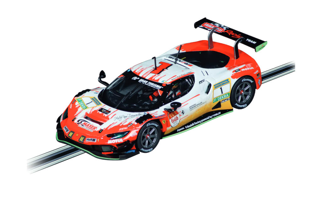 Nordschleife volá – a tentokrát rovnou na vaši digitální autodráhu! Představujeme vám auto Carrera D132 32054 Ferrari 296 GT3 „Frikadelli Racing, No.1″ – věrnou repliku závodního speciálu z jednoho z nejnáročnějších závodů světa, 24 hodin Nürburgringu.