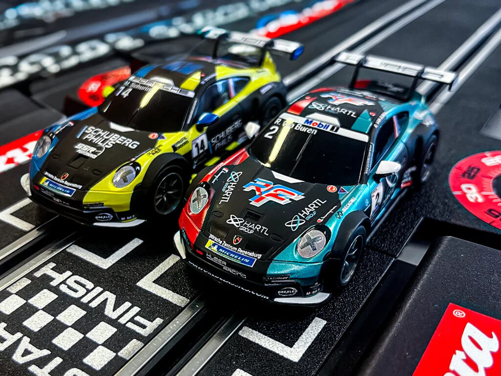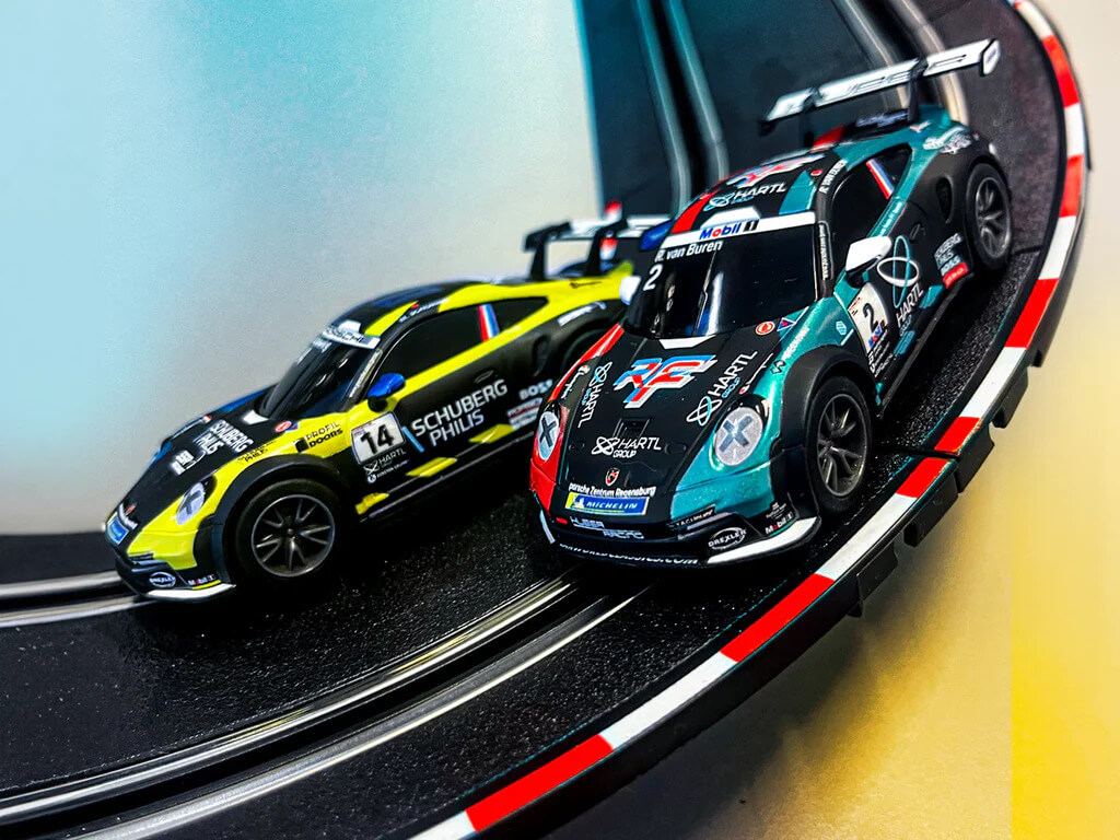 Skutečný Porsche 911 GT3 Cup (992) je závodní speciál poháněný atmosférickým šestiválcovým boxerovým motorem o objemu 4,0 litru s výkonem 375 koní (276 kW). Vůz váží pouhých 1 260 kg, dosahuje maximální rychlosti přes 280 km/h a je vybaven sekvenční šestistupňovou převodovkou PDK. Na rozdíl od silničních verzí má zcela upravený závodní podvozek, aerodynamický přítlačný kit a závodní bezpečnostní klec. Jde o čistokrevný závodní stroj bez kompromisů – a přesně takový je i jeho miniaturní replika na vaší autodráze.