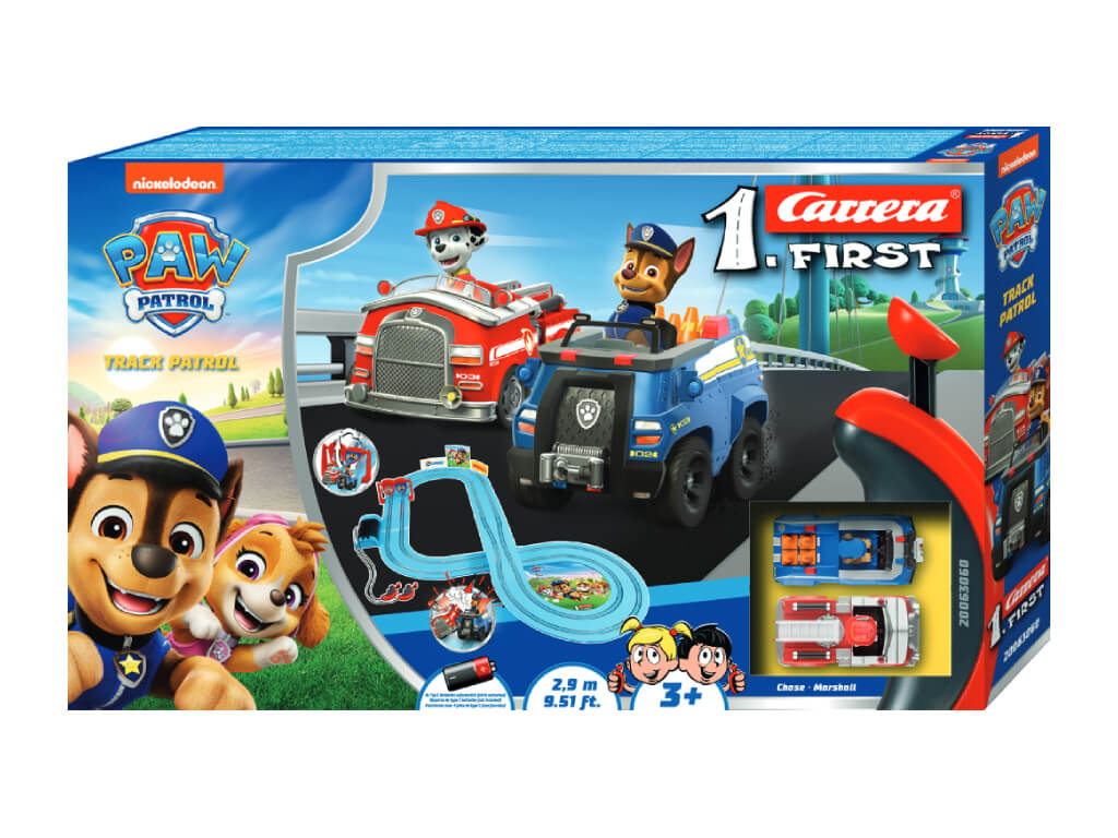 Autodráha Carrera FIRST – 63060 Tlapková patrola je ideálním vstupem do světa autodráh pro děti již od 3 let. Sada je plně vybavena pro okamžitou hru – obsahuje dvě detailně zpracovaná autíčka v měřítku 1:50, snadno sestavitelné díly dráhy, dvě brány pro extra zábavu a ergonomické ovladače rychlosti přizpůsobené dětským rukám.