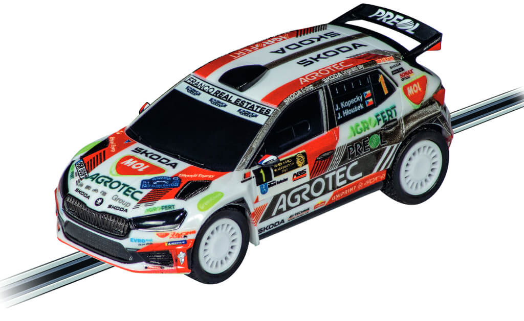 Na trati o délce 4,9 metru se utkají dva skutečné závodní stroje – Škoda Fabia RS Rally 2 v barvách továrního týmu a Škoda Fabia RS Rally 2 „Agrotec Kopecký“, věrná replika vozu legendárního českého závodníka Jana Kopeckého. Jan Kopecký je jedním z nejúspěšnějších českých rally jezdců všech dob – na kontě má několik titulů mistra České republiky v rally a desítky vítězství na domácích i mezinárodních soutěžích, včetně Rally Bohemia či Rally Krkonoše. Se Škodou Fabia RS Rally 2 pak v roce 2023 triumfoval například na Rally Bohemia a dokázal, že česká kombinace jezdce a vozu patří ke světové špičce.